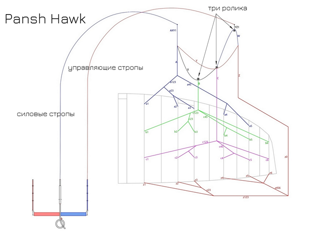 Pansh Hawk, представляющий синтез двух концепций: парафойла и надувного кайта, воплотил в себе преимущества обоих «миров»