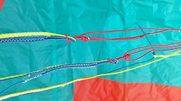С помощью картинки, собирающий концы подкупольной расстроповки, Вы легко разберётесь в присоединении купола к стропам и к планке.