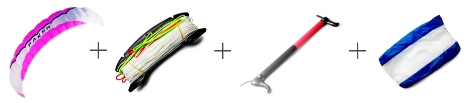 Трапеция снимает нагрузку с предплечий рук. Без неё, при движении с кайтом, сил хватит на десять минут. Чтобы кайт на ручках соединить с трапецией, мы добавляем к нему трапеционный шкот.