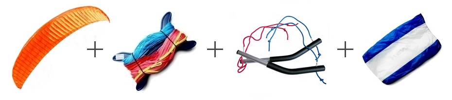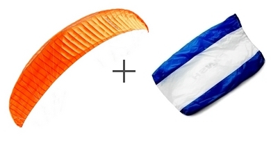 За счёт диагональных нервюр в рядах А, В и С - получил дополнительную жёсткость, придающую ему форму высокоэффективного крыла. Изготовлен из лёгкого воздухо-и-водонепроницаемого материала в следующих расцветках: