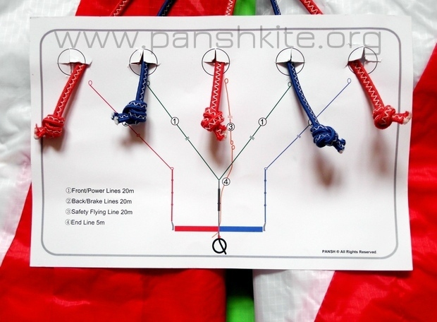 На кайте предусмотрена система страховки за центральную нервюру купола с использованием дополнительной пятой стропы.