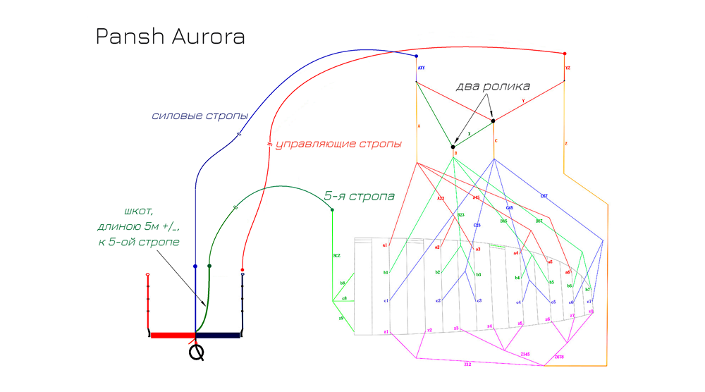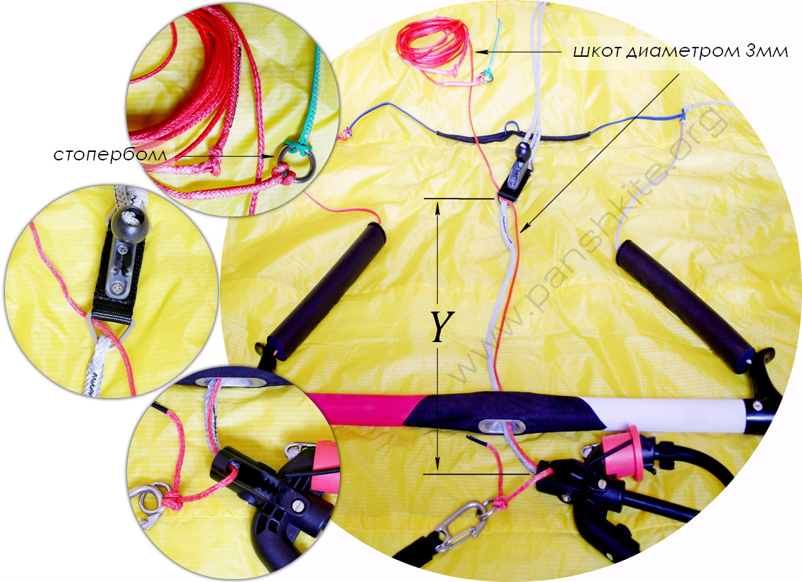 - шкот длиной 5м +/- и диаметром 3мм +/- за который мы зацепляем страховочный лиш.
