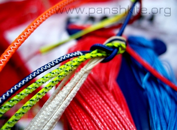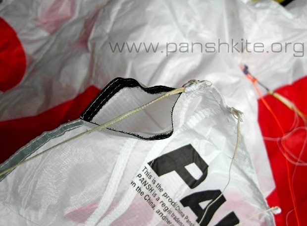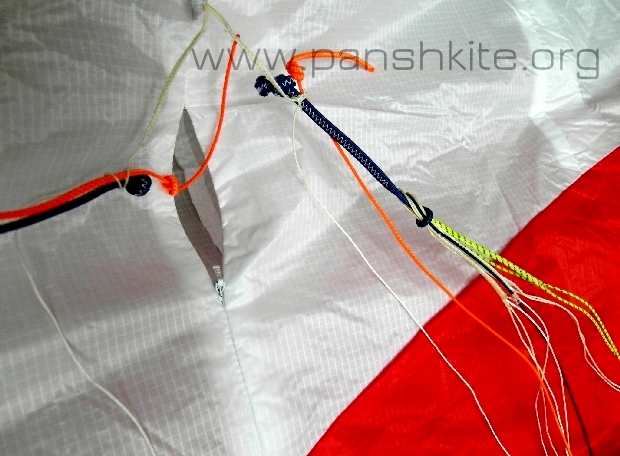 - Настройка длины управляющего ряда на Pansh Adam предусмотрена не только на планке/ручках, но и под куполом. Подняв первый раз кайт в зенит, Вы поймёте, есть ли провисание управляющих строп. При необходимости завяжите по новому узелку на длинных оранжевых брайдлах под куполом и перецепите на них управляющие стропы.